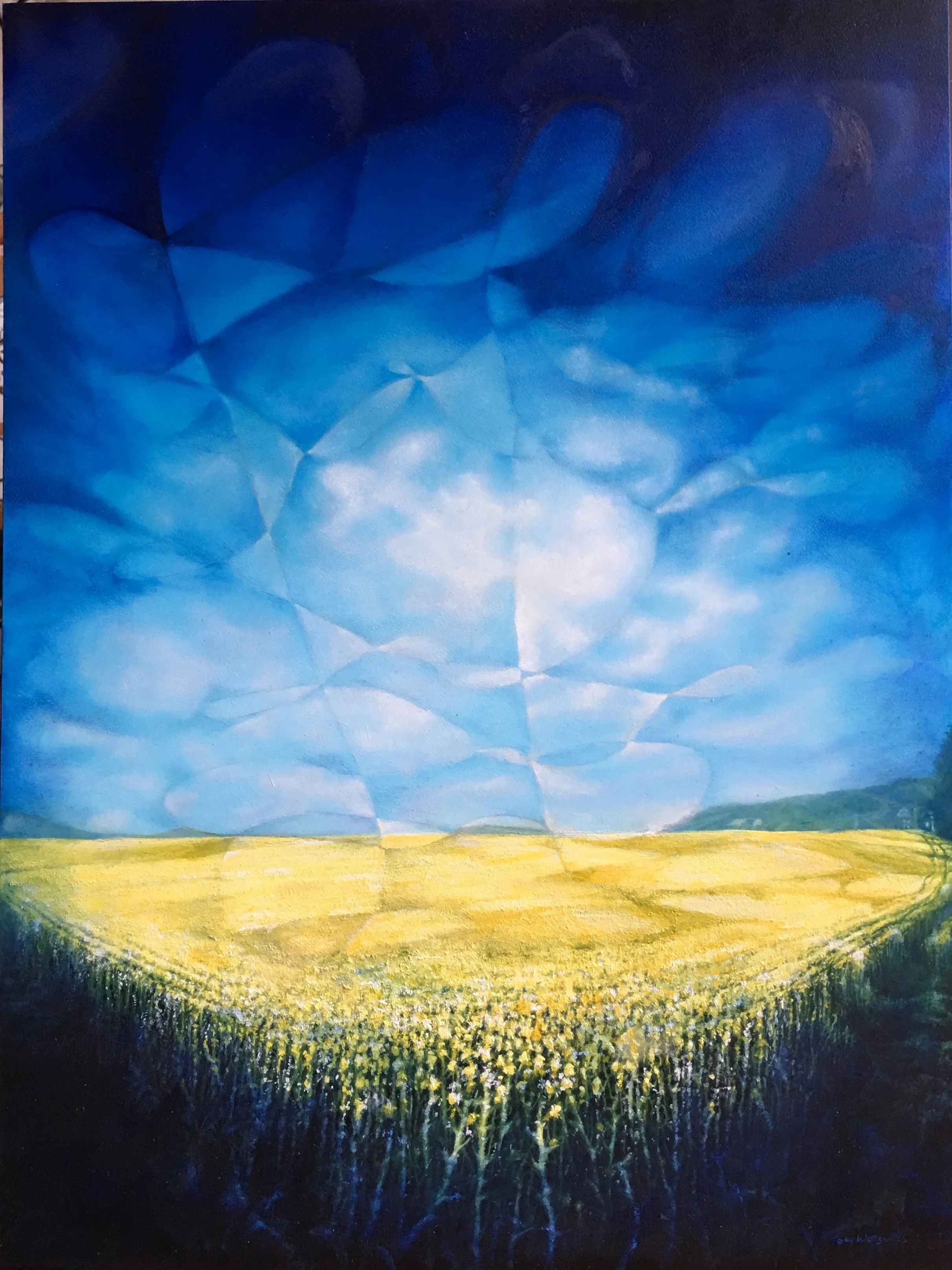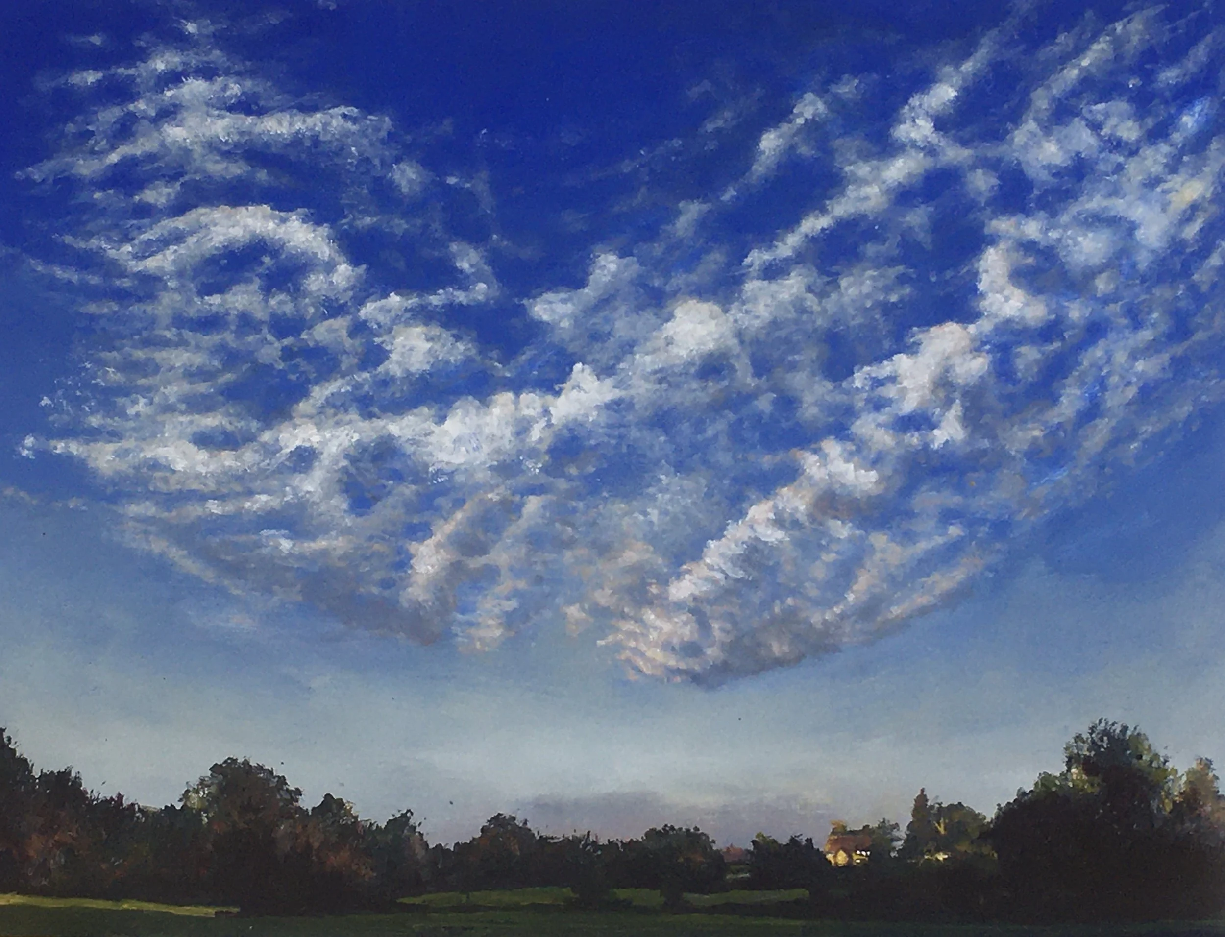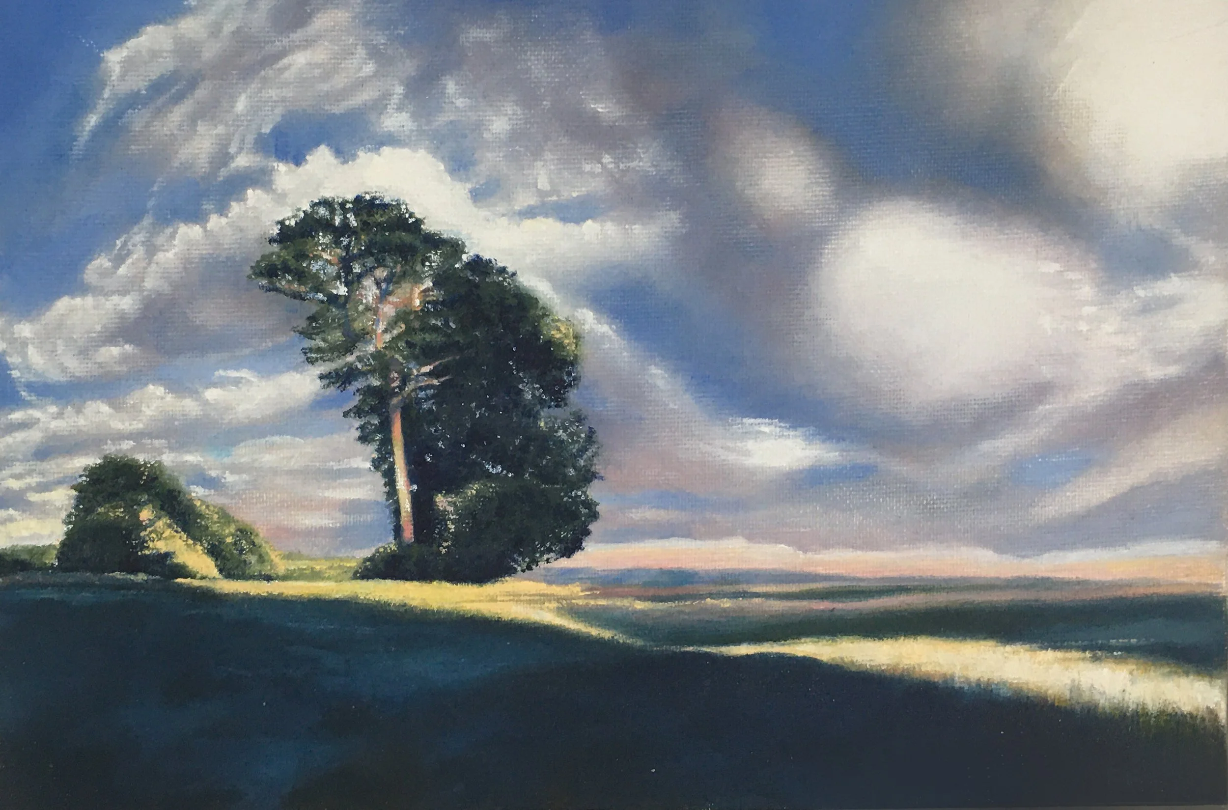 Larks ascending Acorns Field, Betchworth Oil on board